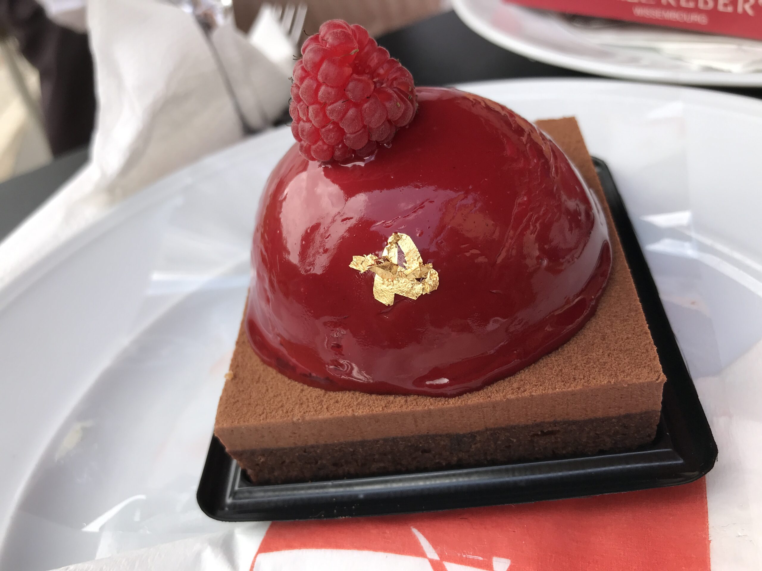 În 2013 am ajuns aici prima oară, pe un viscol năpraznic, dar având în minte un lucru clar: recomandarea prietenilor mamei mele de a încerca eclerele cu ciocolată și zmeură merită orice efort! Și așa a fost, eclere au fost absolut minunate, iar întreg locul e încântător: o vitrină plină cu tentații dulci, perfecte din punct de vedere vizual, în diverse culori și care promit experiențe gustative de neuitat. Fațata barocă vopsită în roșu are o vitrină imensă, iar din victrină se vede partea de magazin a coferăriei, care are un loc special dedicat ciocolatei, iar în partea din spate e zona de cafenea, unde oaspeții pot lua loc la măsuțe și se pot bucura în tihnă de toate delicatesele. Iar pentru perioade mai blânde din punct de vedere al vremii, cofetăria are și o grădină, unde adeseori se organizează târguri de antichități și vintage. Superb, nu-i așa?